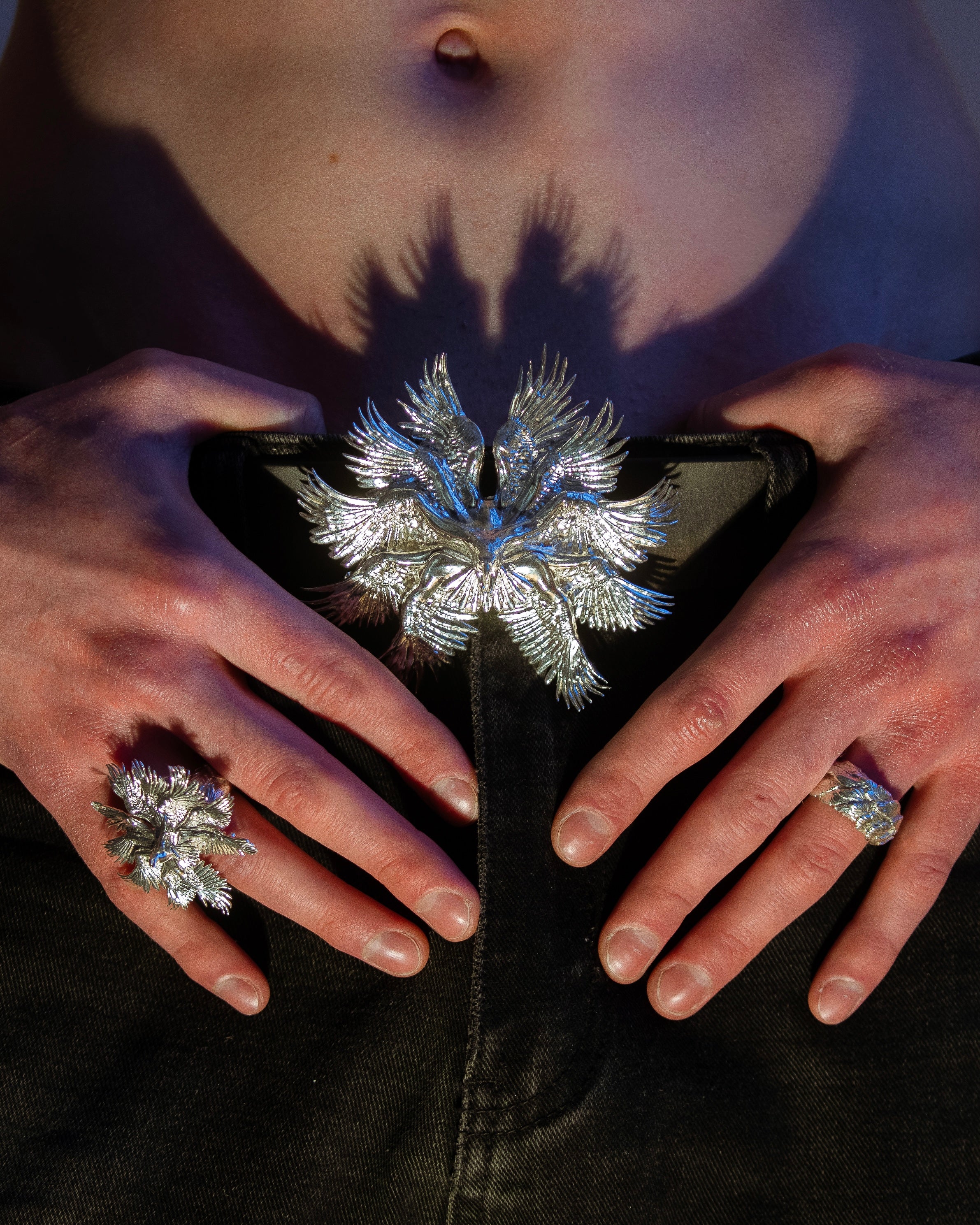 Diese Kollektion erweitert mein Ölgemälde Halcyon um skulpturalen Schmuck – konzipiert nicht einfach als Accessoires, sondern als sammelwürdige Kunstobjekte zum Tragen.